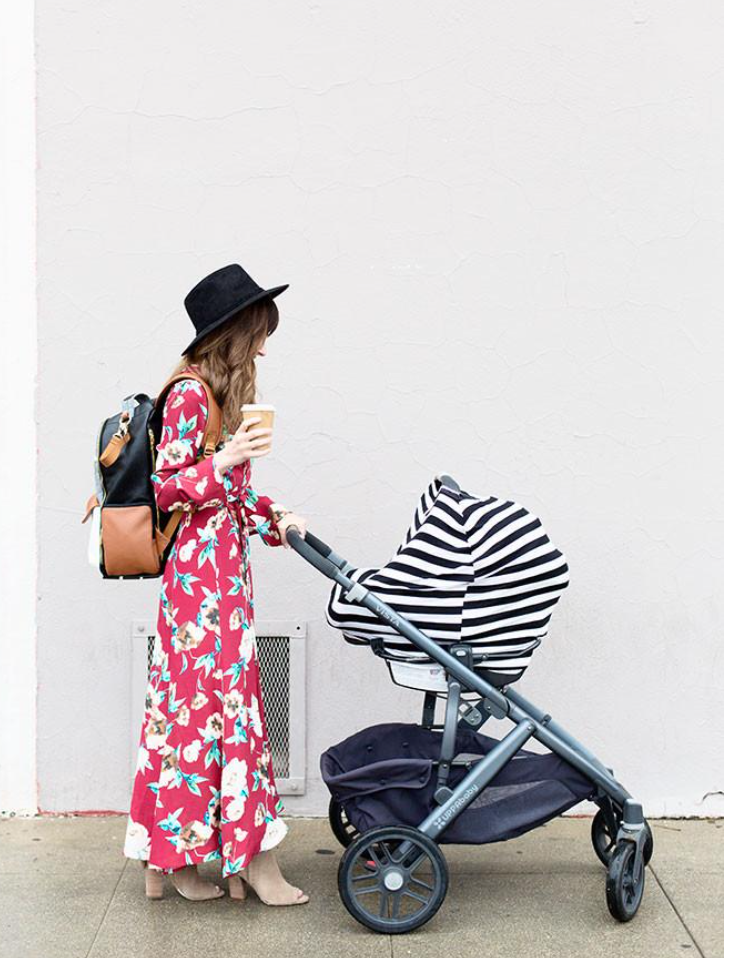 When being used as a car seat cover, the Mom Boss has a universal fit and allows for secure handle access. It provides quick and easy shade, protection from the wind and privacy when you are on-the-go, but still lets you easily check on baby. The Mom Boss also fits standard shopping carts to protect against germs while shopping. To always keep your Mom Boss within reach, it can be worn as a stylish and versatile infinity scarf.