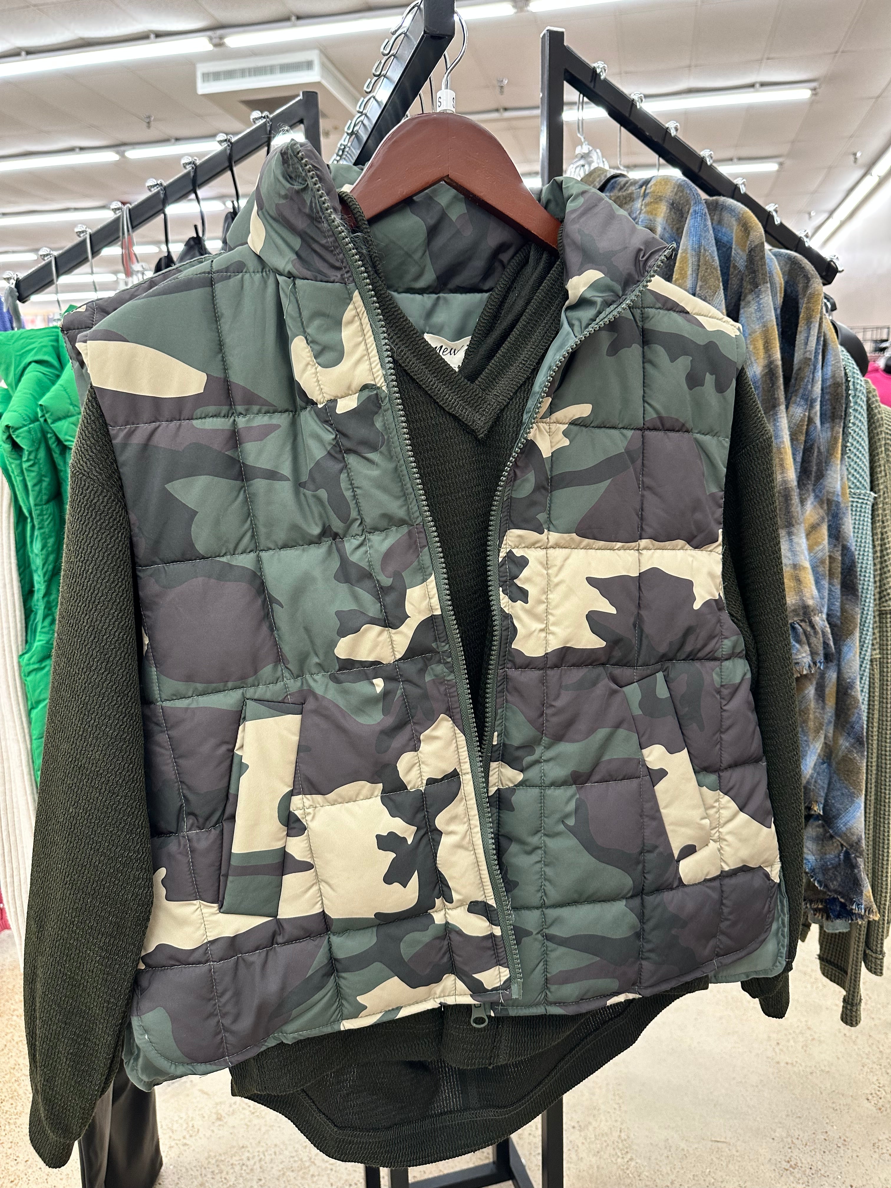 Caught Up With You White Camo Puffer Vest