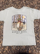 The Mallard Hunting Toddler Tee from Rowdy Boys is a charming addition to any young southern gent's wardrobe. This tee is featured in a vibrant Bella + Canvas Dusty Blue color. With short sleeves and a machine washable design, it's as practical as it is stylish. Inspired by the rowdiness and creativity of our own boys, this tee is perfect for the adventurous spirit of your toddler.