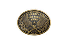Beautifully designed mens Nocona buckle by M&F Western Products. The oval buckle has the wording THE RIGHT TO KEEP AND BEAR ARMS engraved with a scrolling and eagle design engraved around it. Smooth edge in a matte Antique Gold.