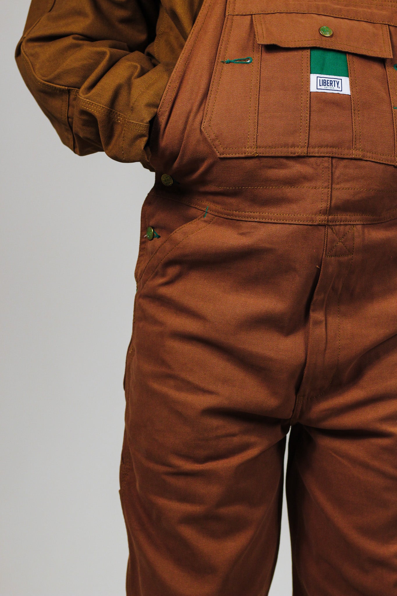 America's iconic Liberty Men's 10 oz. Duck Bib Overalls since 1912, Liberty duck overalls are durable, adjustable and versatile. Signature Liberty Green accents are reflected on our men's overalls, complete with a zippered pouch (great for keeping your phone safe) and snapping flap pocket. Made to last, these men's overalls include our classic triple-needle stitching to reduce blowouts and provide longer durability. Perfect for long days on the job, these men's overalls are a must-have.