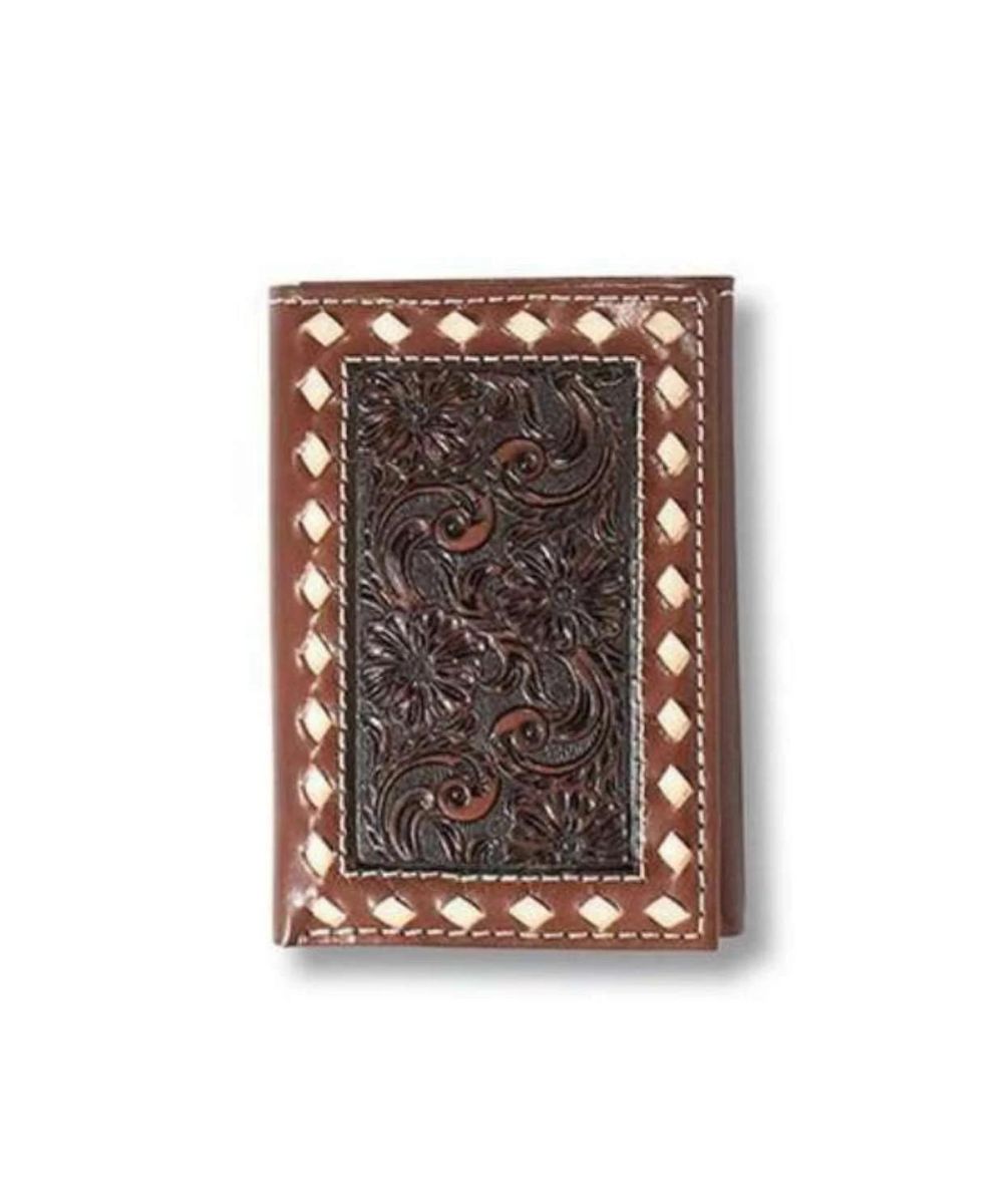 Ariat Men's Bifold Floral Buck Laced Stitched Leather Wallet