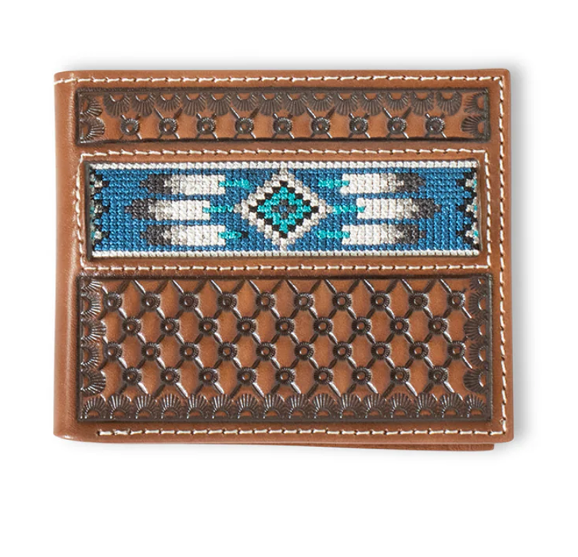 Ariat Men's Trifold Embroidered Southwestern Leather Wallet