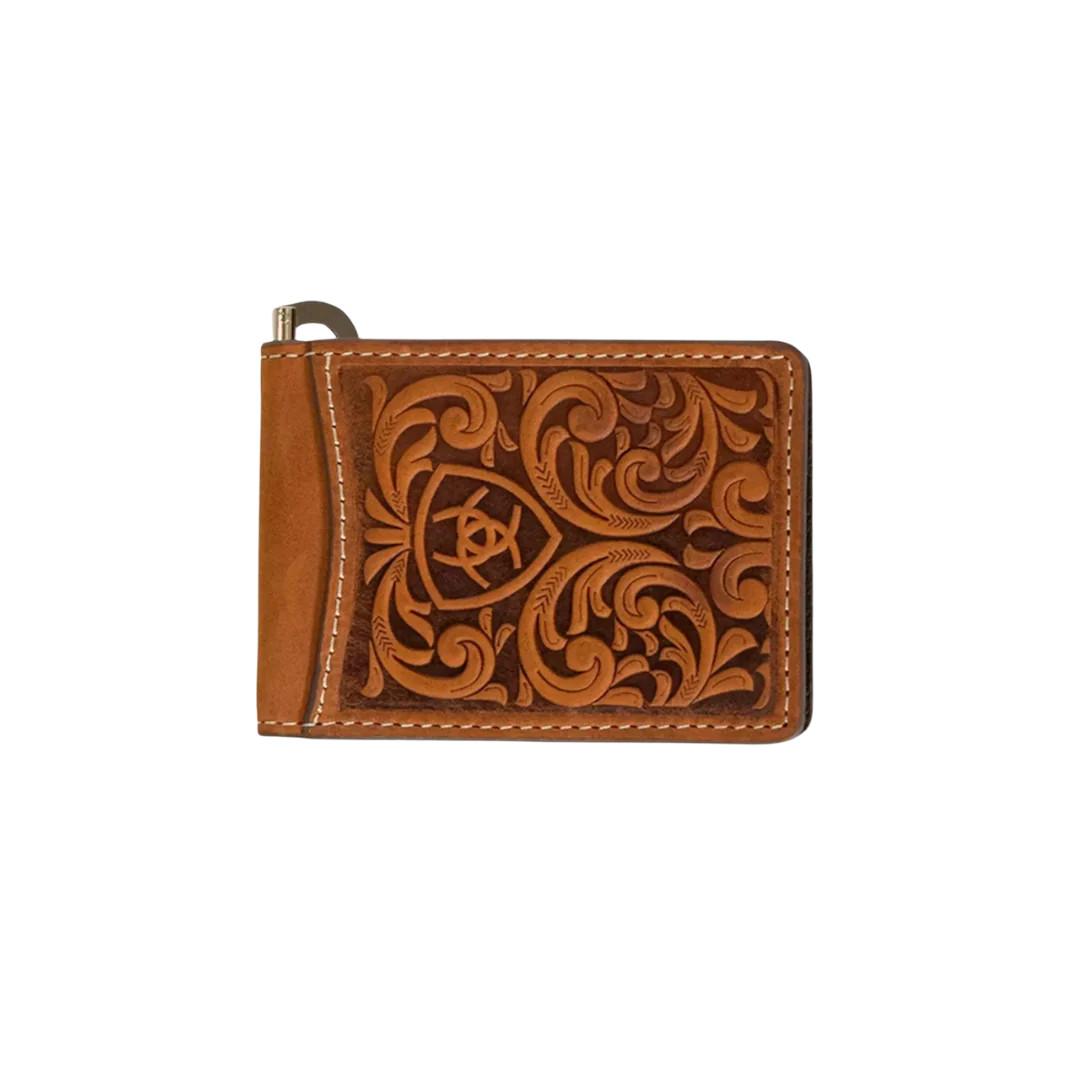 Ariat Men's Leather Embossed Bifold Money Clip Wallet