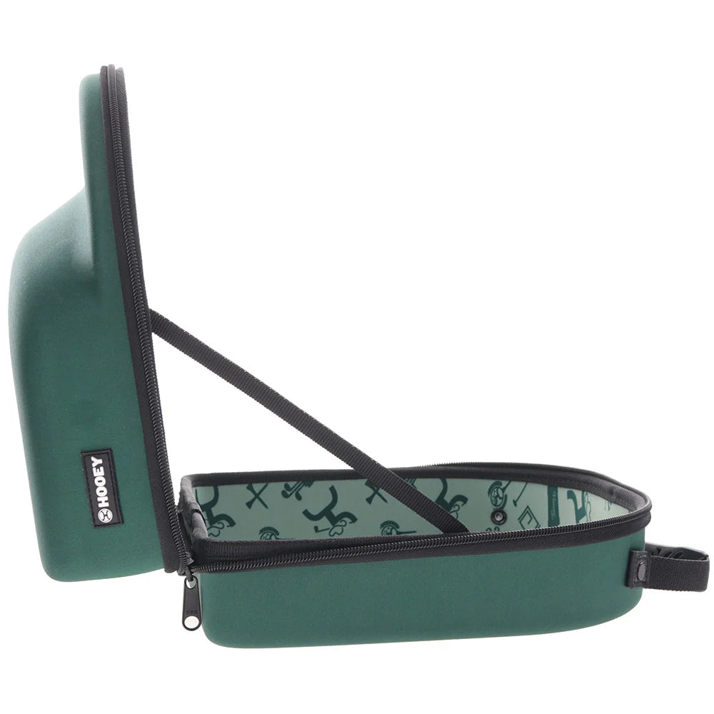 The crush proof case stores 4-5 caps and features multiple eyelets for ventilation, easy handle to hook onto your bag and Hooey Logo on the front.