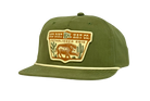 Rugged and ready for the outdoors, this Red Dirt Hat Co. cap features a rich olive green design with a classic flat bill and rope detail for a timeless western look. The embroidered patch showcases a desert scene with bold, vintage-inspired artwork, adding character and heritage to the style. Durable and easy to wear, this cap is perfect for long days outside, hunting trips, or everyday laid-back wear.