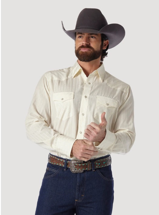 Men's Wrangler Retro Premium Ecru Stripe Western Snap Shirt
