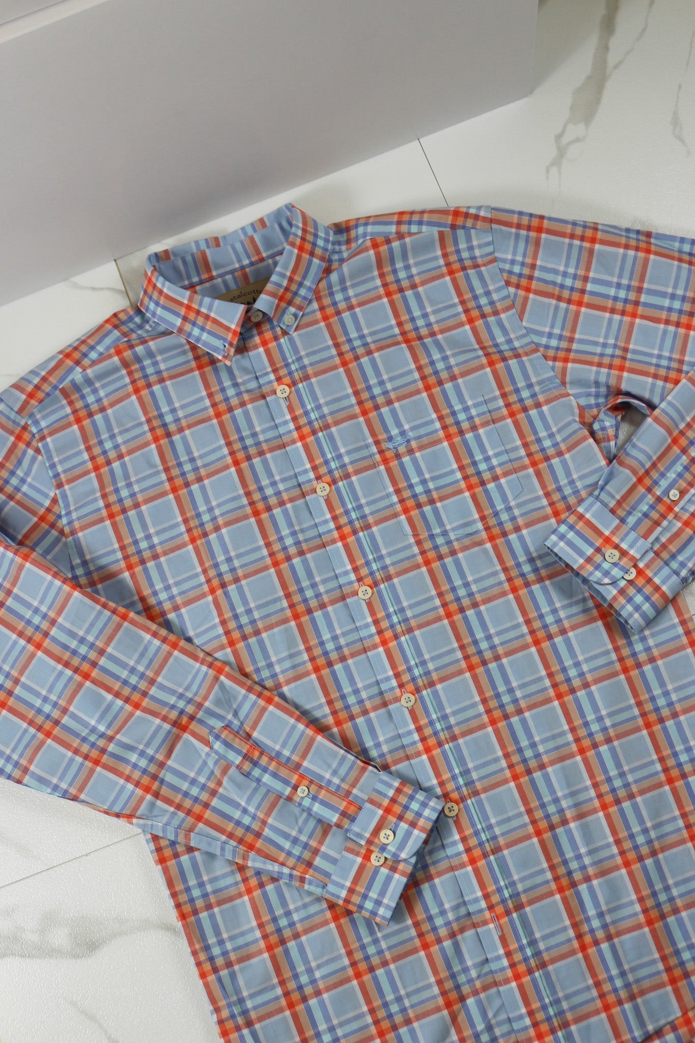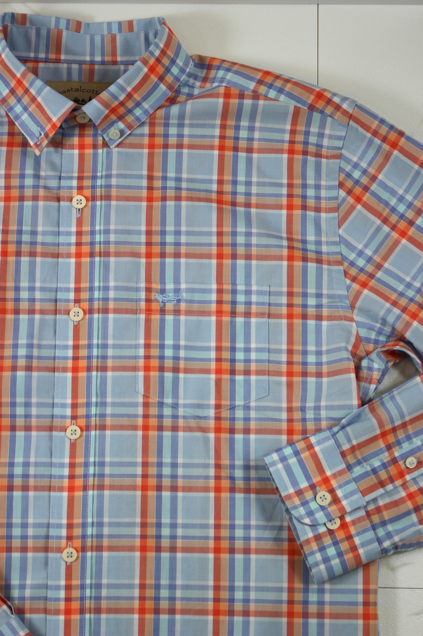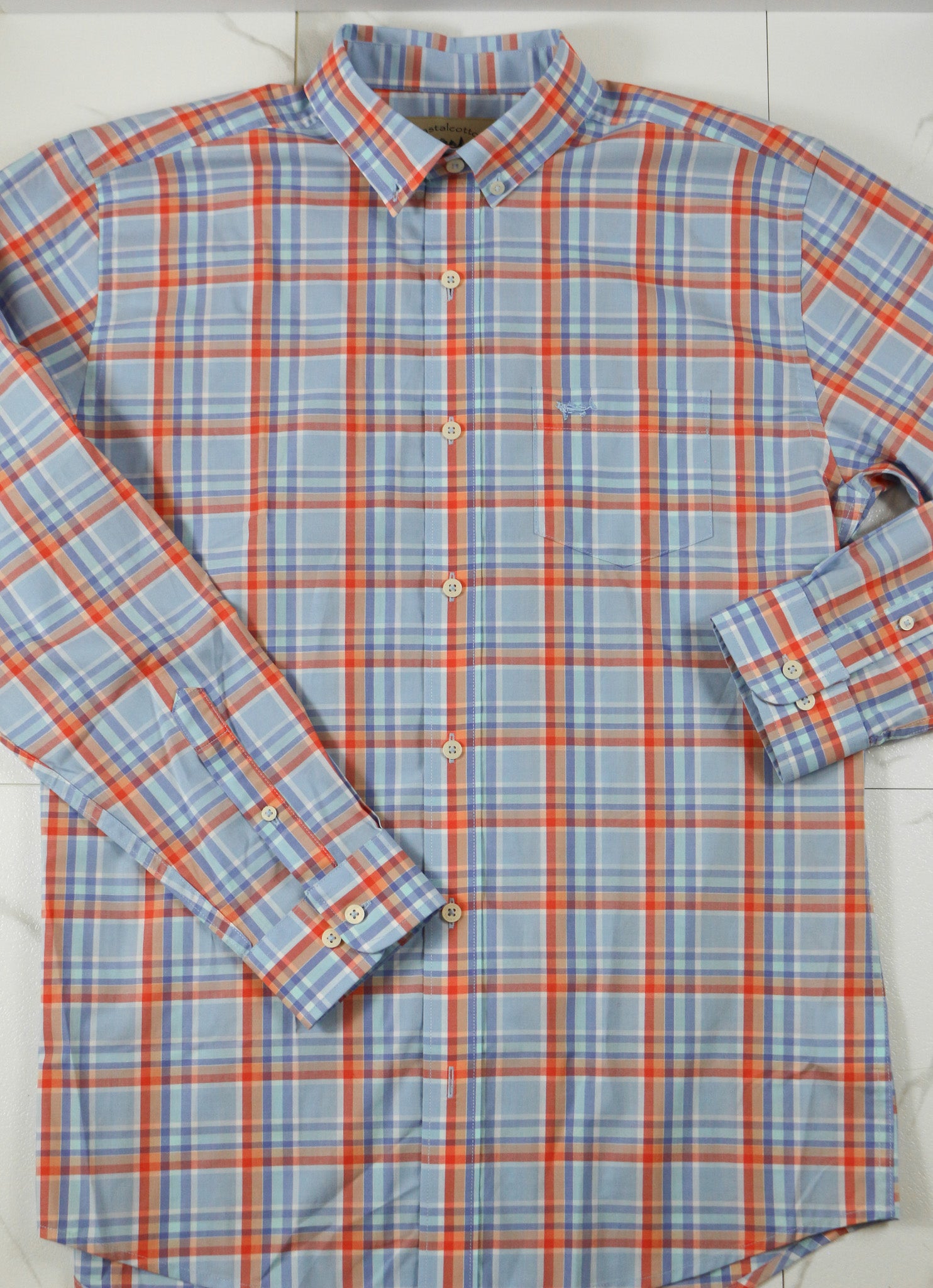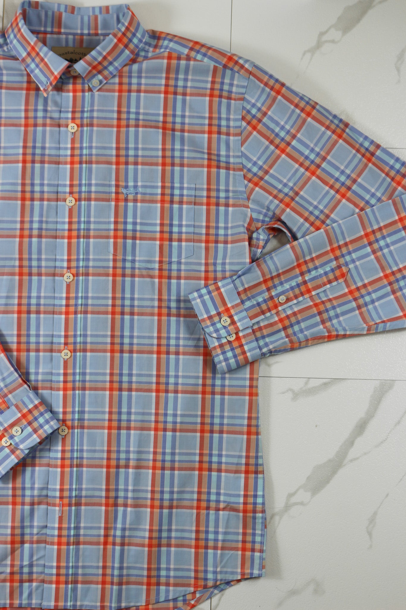 Coastal Cotton Men's Watercolor Plaid Cotton Polyester Long Sleeve Shirt