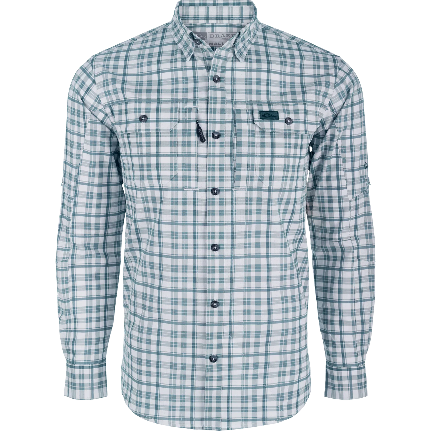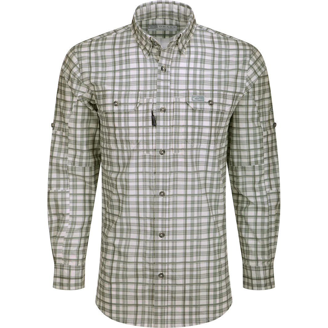 The Drake Hunter Creek Window Pane Plaid Shirt combines comfort and technology by using a unique micro-mesh weave made from 100% polyester. This performance fabric is lightweight at 120 GSM which allows moisture to wick quickly from the body. The micro-mesh provides natural ventilation and has SILVADUR antimicrobial technology to keep the shirt fresh and odor free. It also has a UPF30 rating for sun protection plus it has natural stretch for ease of movement. The Drake Hunter Creek Window Pane Short Sleeve shirt is packed with features: a classic fit, a hidden button-down collar, a vented back cape, two buttons through flap chest pockets with a covered hidden zipper pocket on the right pocket and a Magnattach closure on the left pocket. It has a sculpted hem which allows you to wear tucked or untucked. Inside the hem is a built-in sunglass wipe. Classic styling and technical features make the Drake Hunter Creek Window Pane Shirt a high performance and functional shirt you will enjoy for years to come.