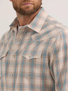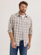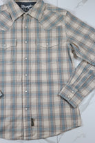 Wrangler Men's Retro Sandy Blue Premium Long Sleeve Plaid Shirt