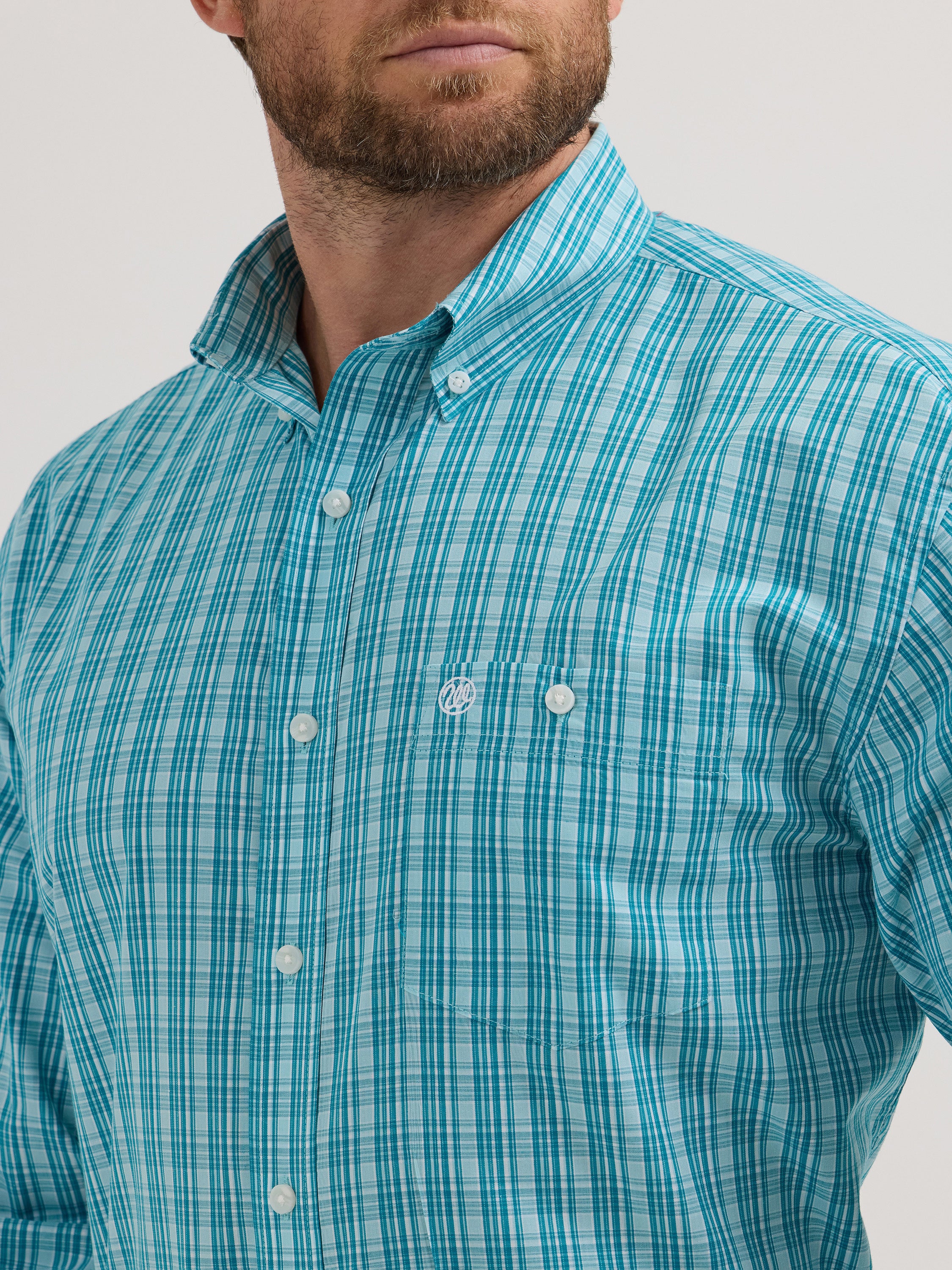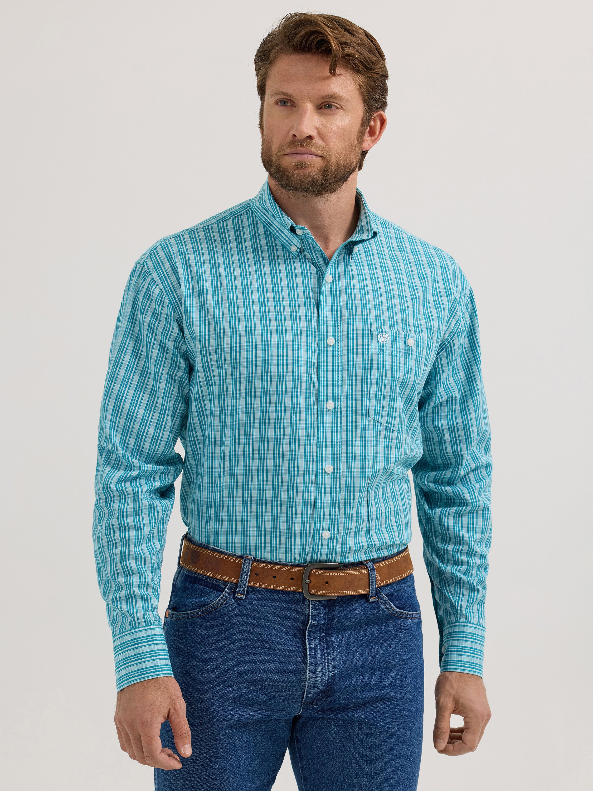 Wranglers Men's Light Blue Aqua Classic Long Sleeve Shirt