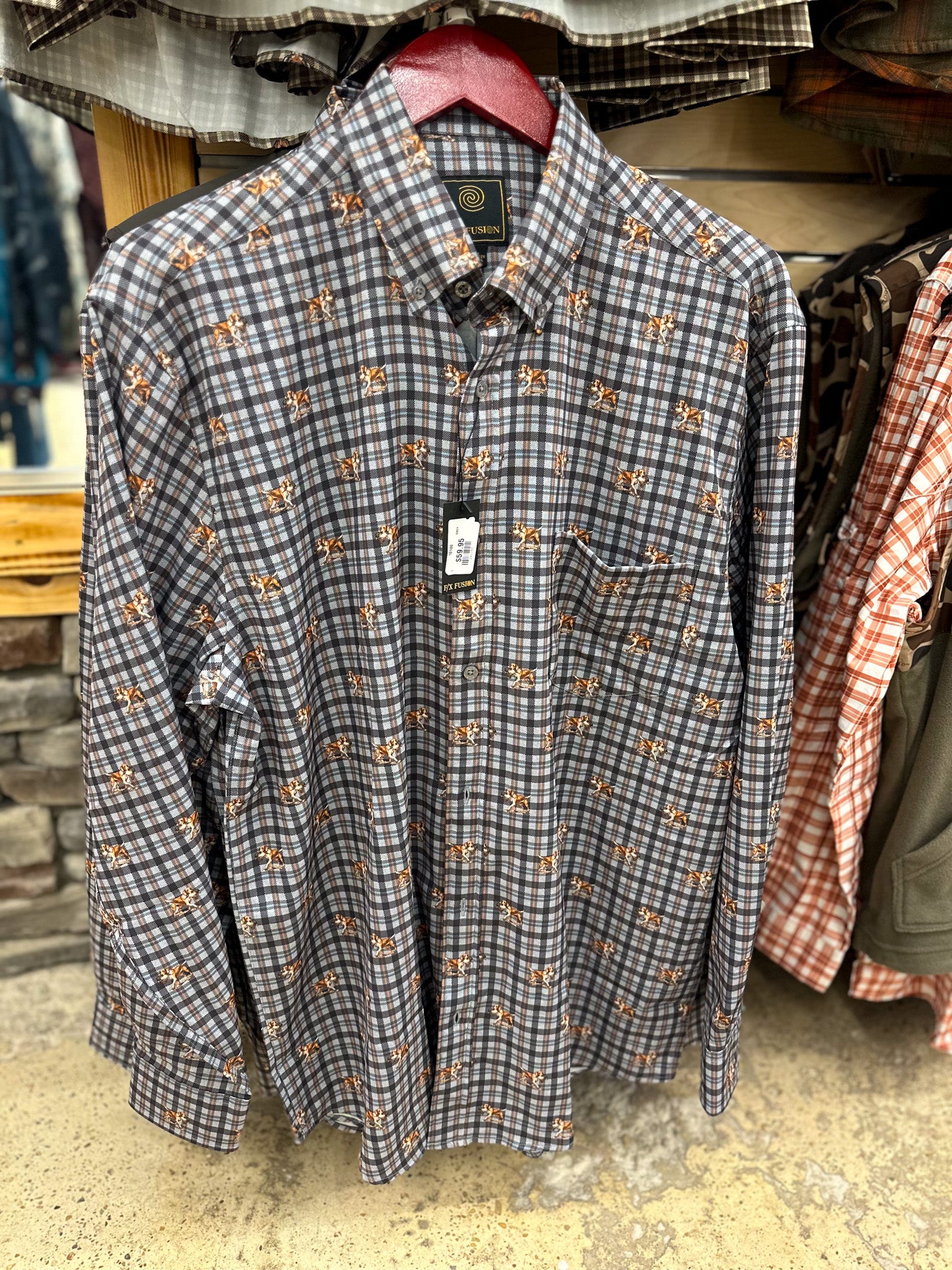 Men's Grey Hunting Dog Stretch Flannel Shirt