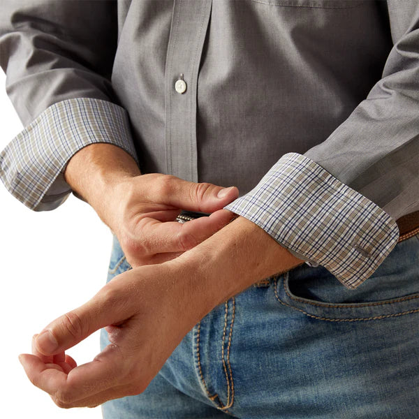 Ariat Men's Wrinkle Free Solid Grey Long Sleeve Button Down Shirt