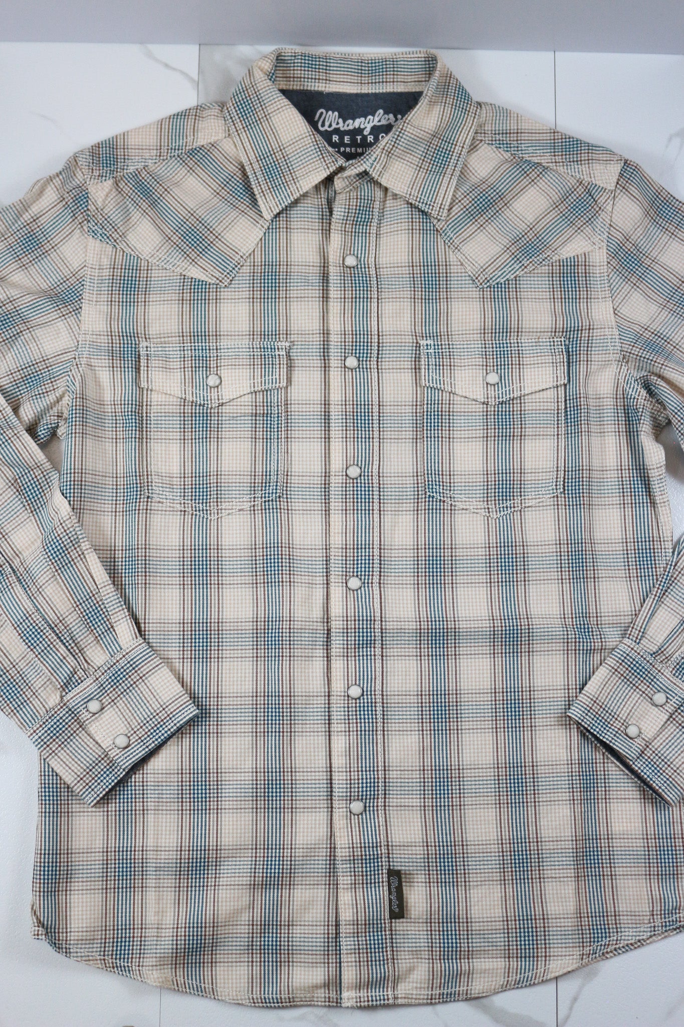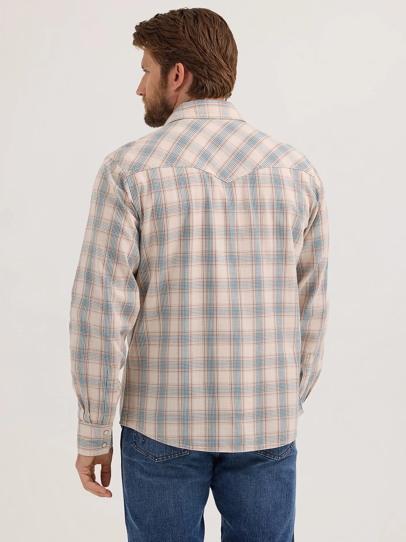 Wrangler Men's Retro Sandy Blue Premium Long Sleeve Plaid Shirt