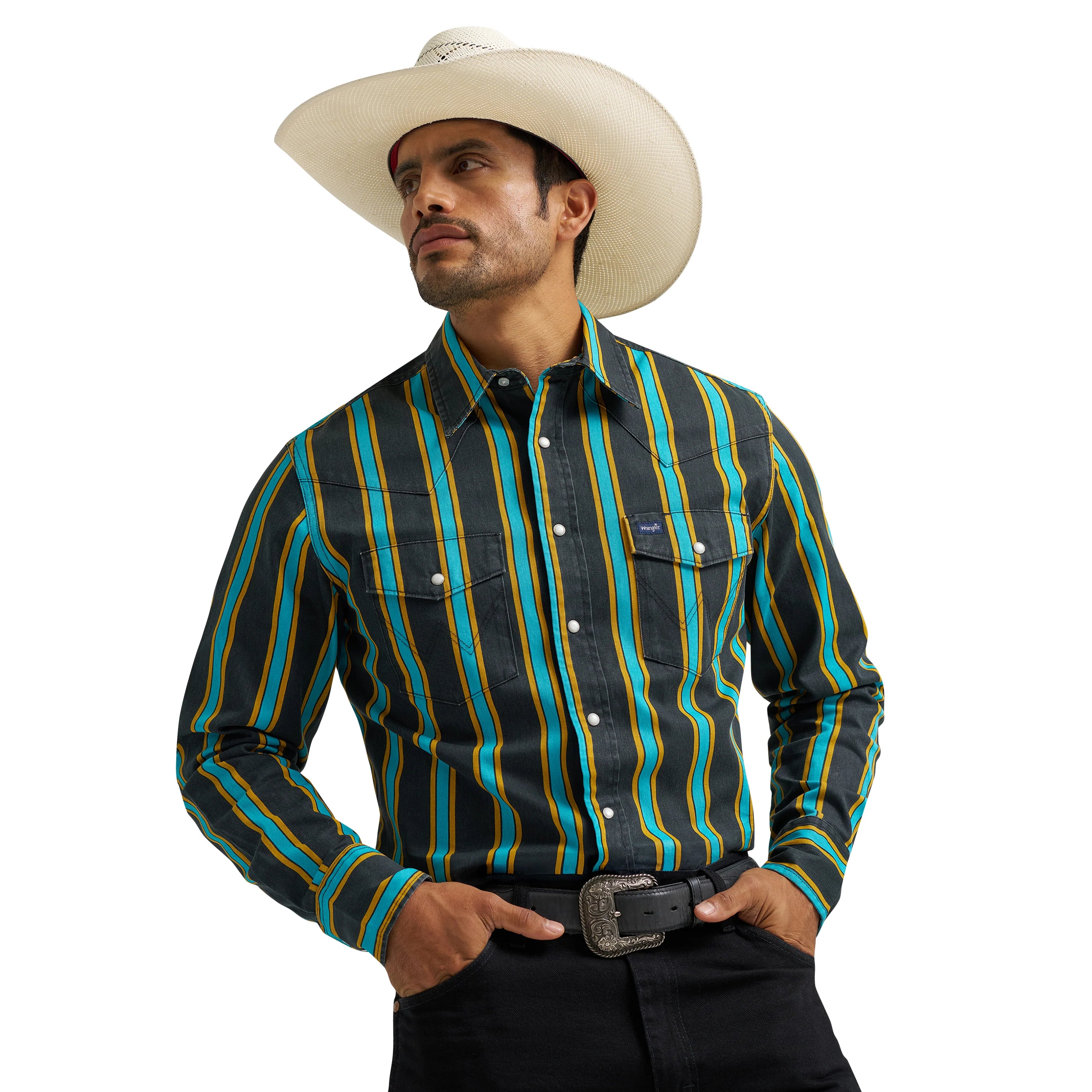 Wrangler Men's Vintage Inspired Teal Pop Western Shirt