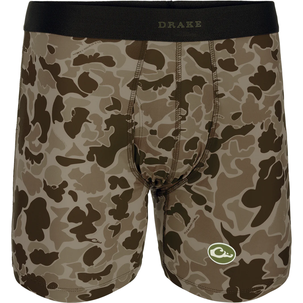 We took the concept of a traditional boxer brief and made a super close to the skin comfortable garment with four-way stretch to give you total freedom of movement. We used flat seam construction for anti-chafing and moisture wicking technology fabric with a quick dry finish to keep things cool and dry. The waistband is responsive, and the fly is functional. Available in solids and our exclusive Old School Camo. Wearing Drake never felt so good.
