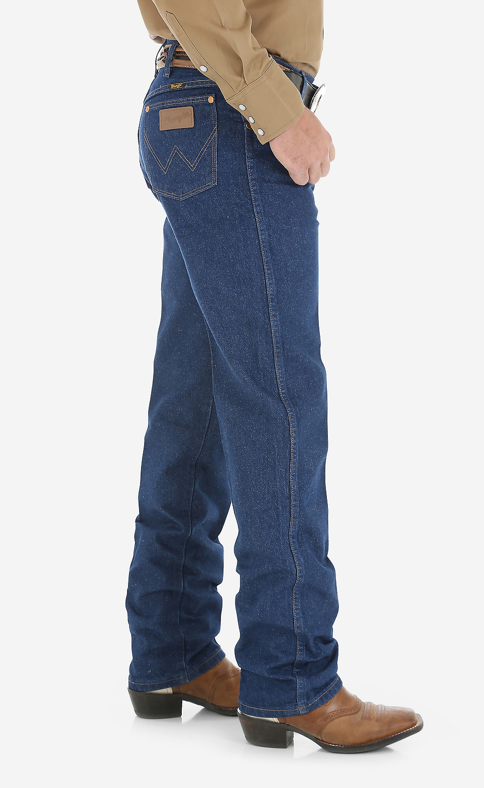 For more than 70 years, our 13MWZ Cowboy Cut® jeans have been a tried-and-true wardrobe staple for cowboys across the country. Today, 13MWZ is the official ProRodeo competition jean. We knew a good thing when we saw it, which is why the Wrangler® Cowboy Cut® jeans haven't changed much since they were first designed by 'Rodeo Ben' Lichenstein in 1947. These comfortable, durable jeans come fully equipped with all the authentic details you'd expect from a hallmark of cowboy culture, including a classic neolite patch, five-pocket styling, and our signature 'W' stitching. When it comes to keeping your wardrobe in check and ready for anything, you can never have too many pairs of the men's Cowboy Cut® Wrangler® jeans.