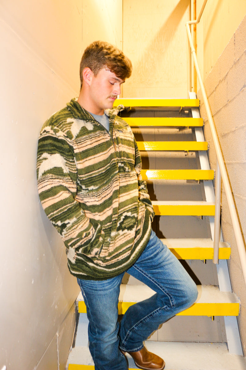 Burlebo Men's Classic Deer Camo Blaze Tech Quarter Zip Pullover