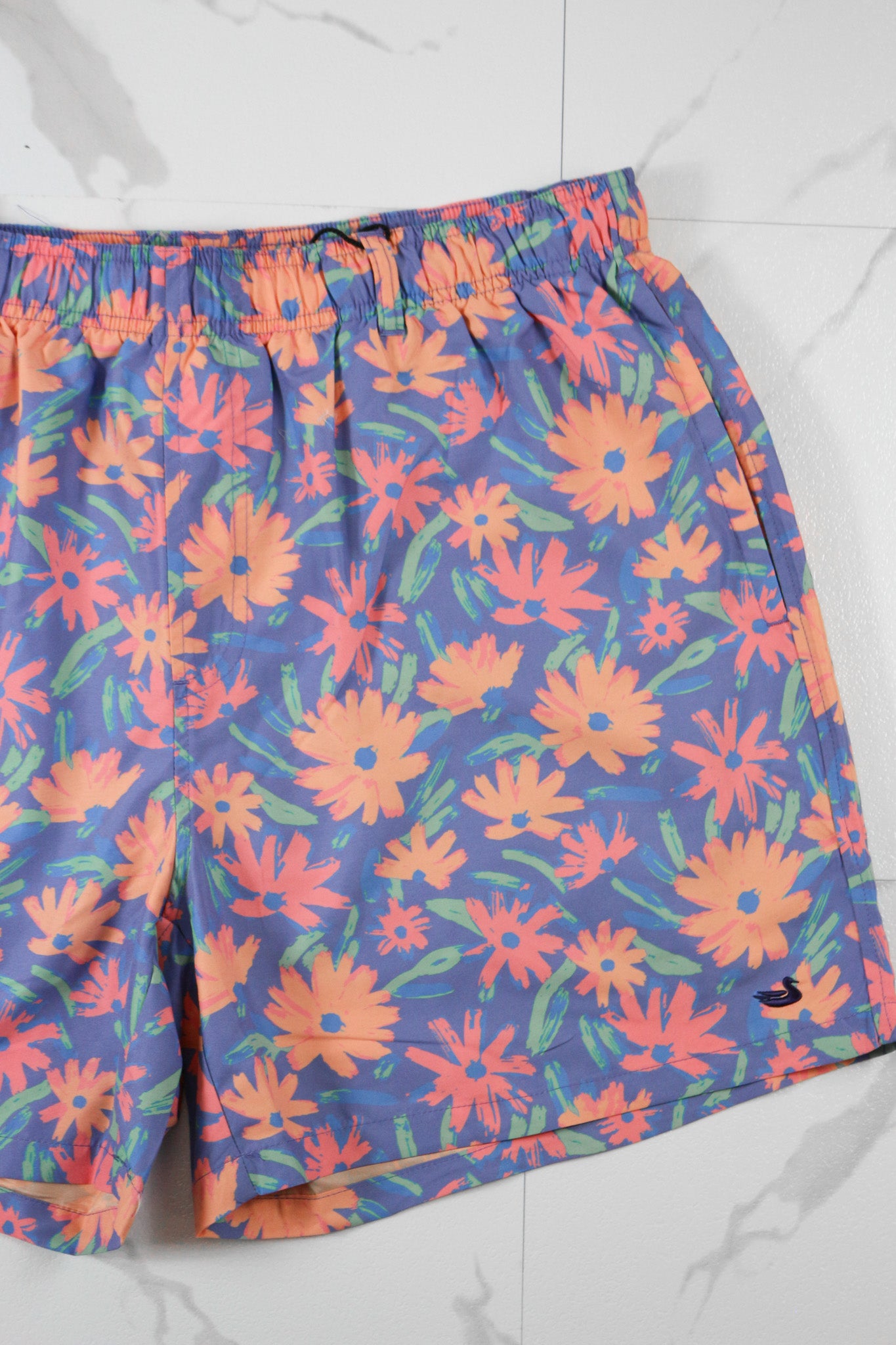 Southern Marsh Men's Harbor Lined Pushing Purple Daisies Swim Trunk