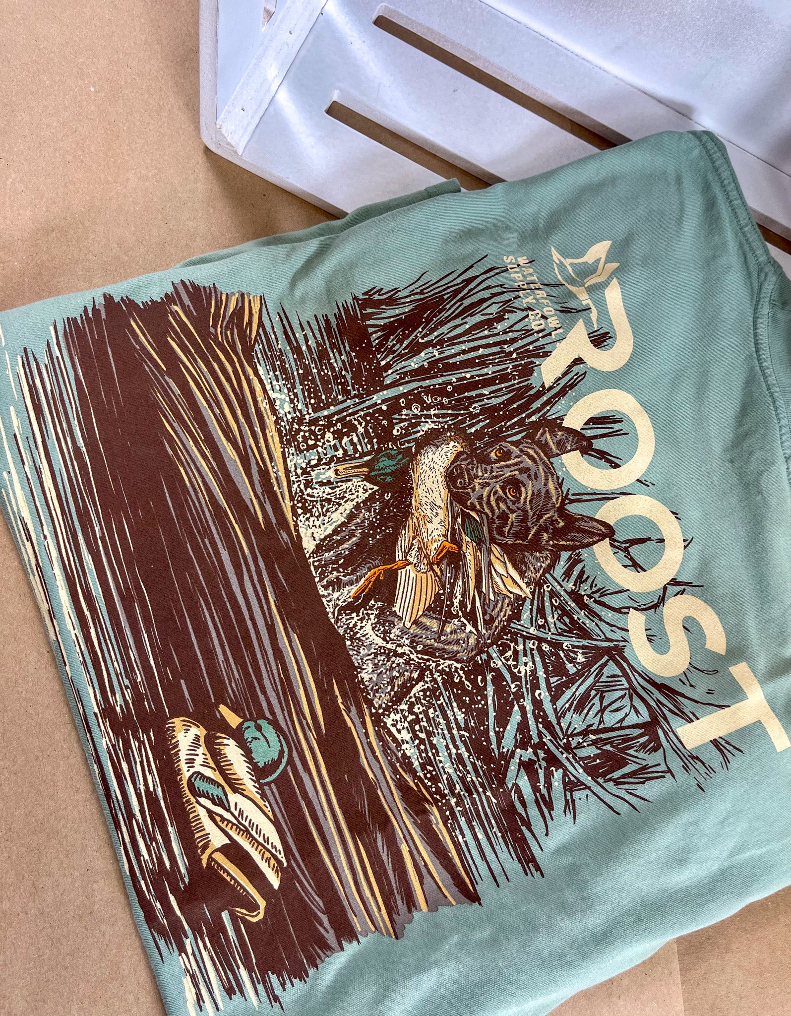 Roost Waterfowl signature T-shirts will be the softest shirt in your closet. Each shirt goes through a unique garment wash process for a "worn in" look and feel. Our custom graphics are designed to be unique and are perfect for a day at the farm, a day on the beach and for everything else life throws our way.