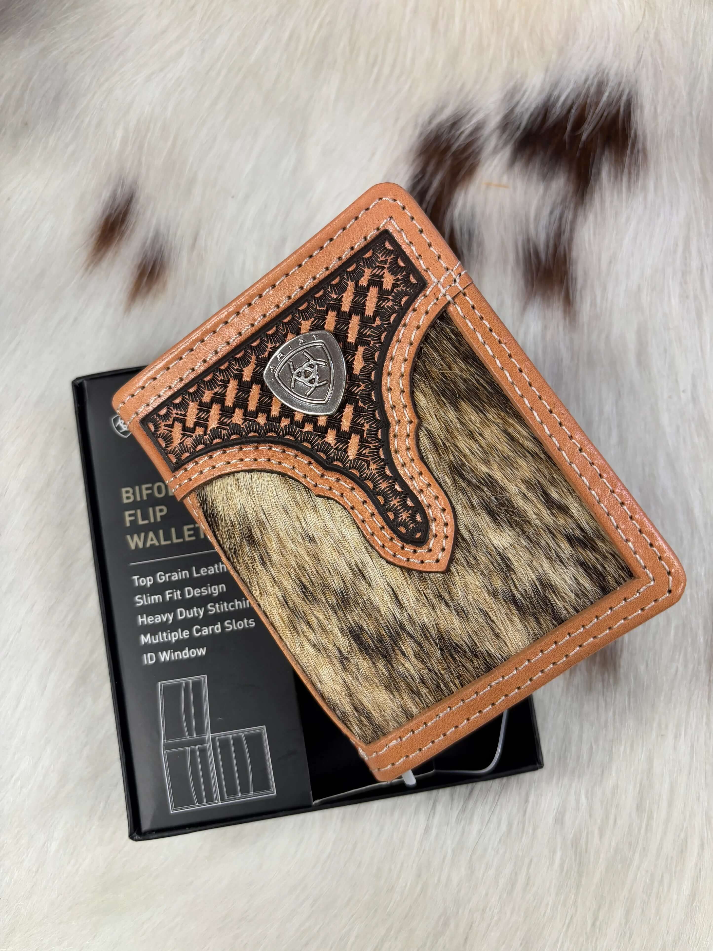 Ariat Bifold Flip Calf Hair Basket Weave Wallet