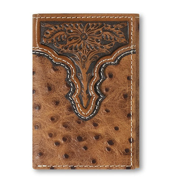 Ariat Men's Trifold Ostrich Print Floral Wallet