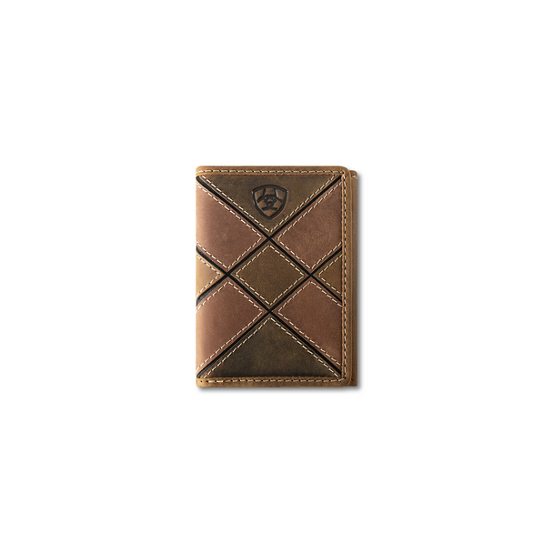 Ariat Men's Trifold Patchwork Embossed Brown Wallet