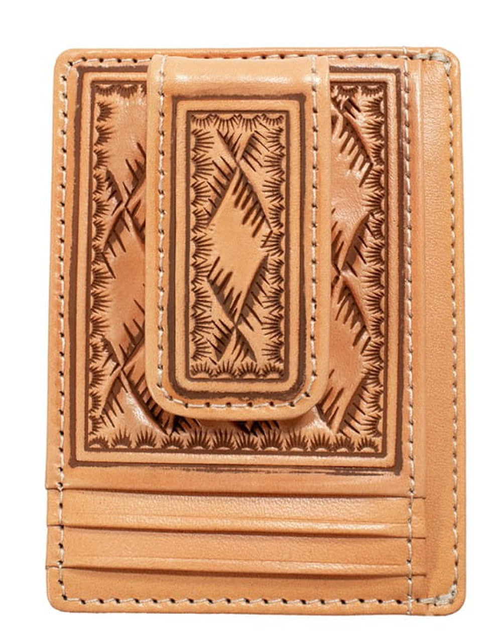Nocona Mens Natural Leather Basket Weave Embossed Money Clip Wallet