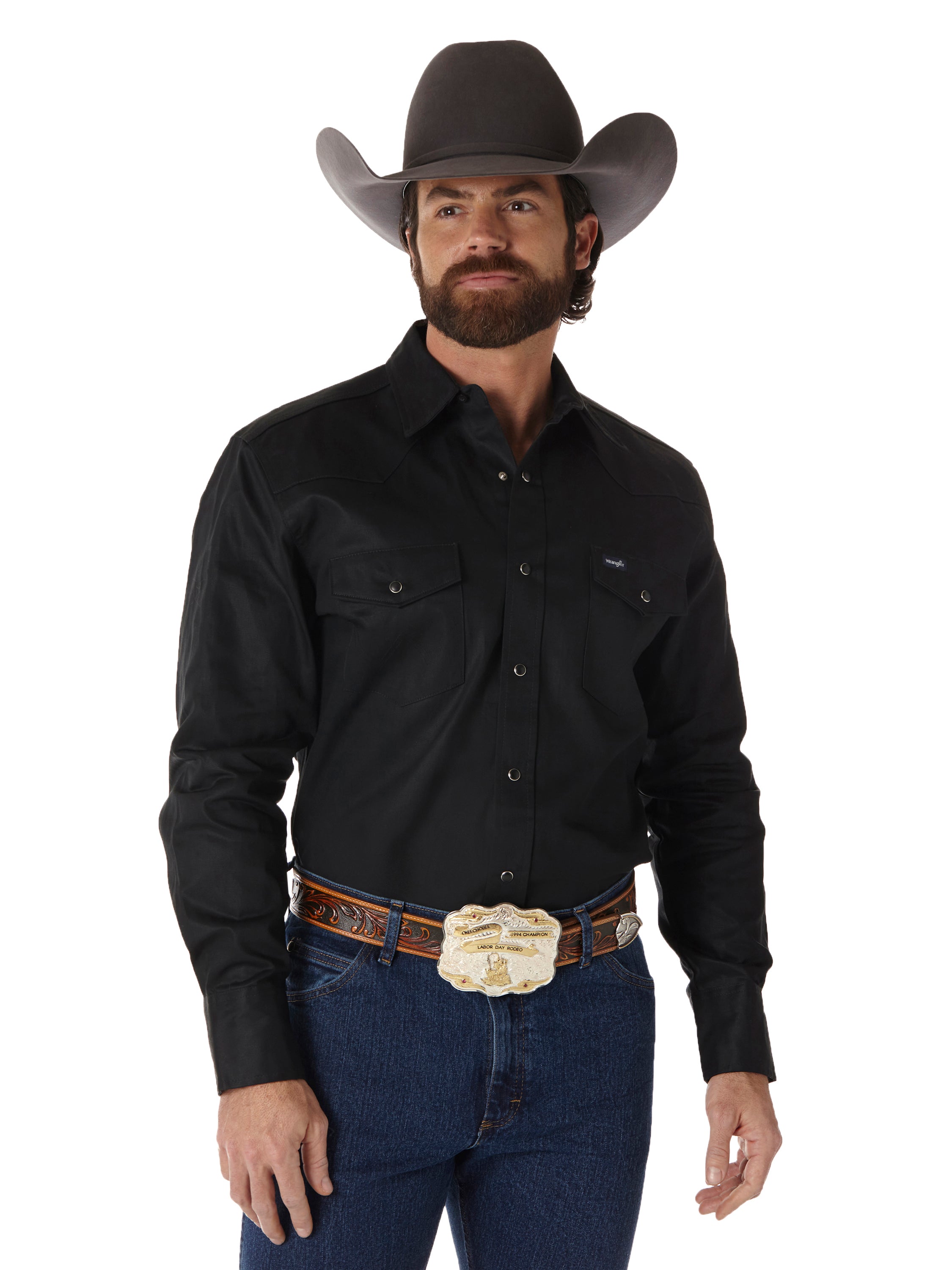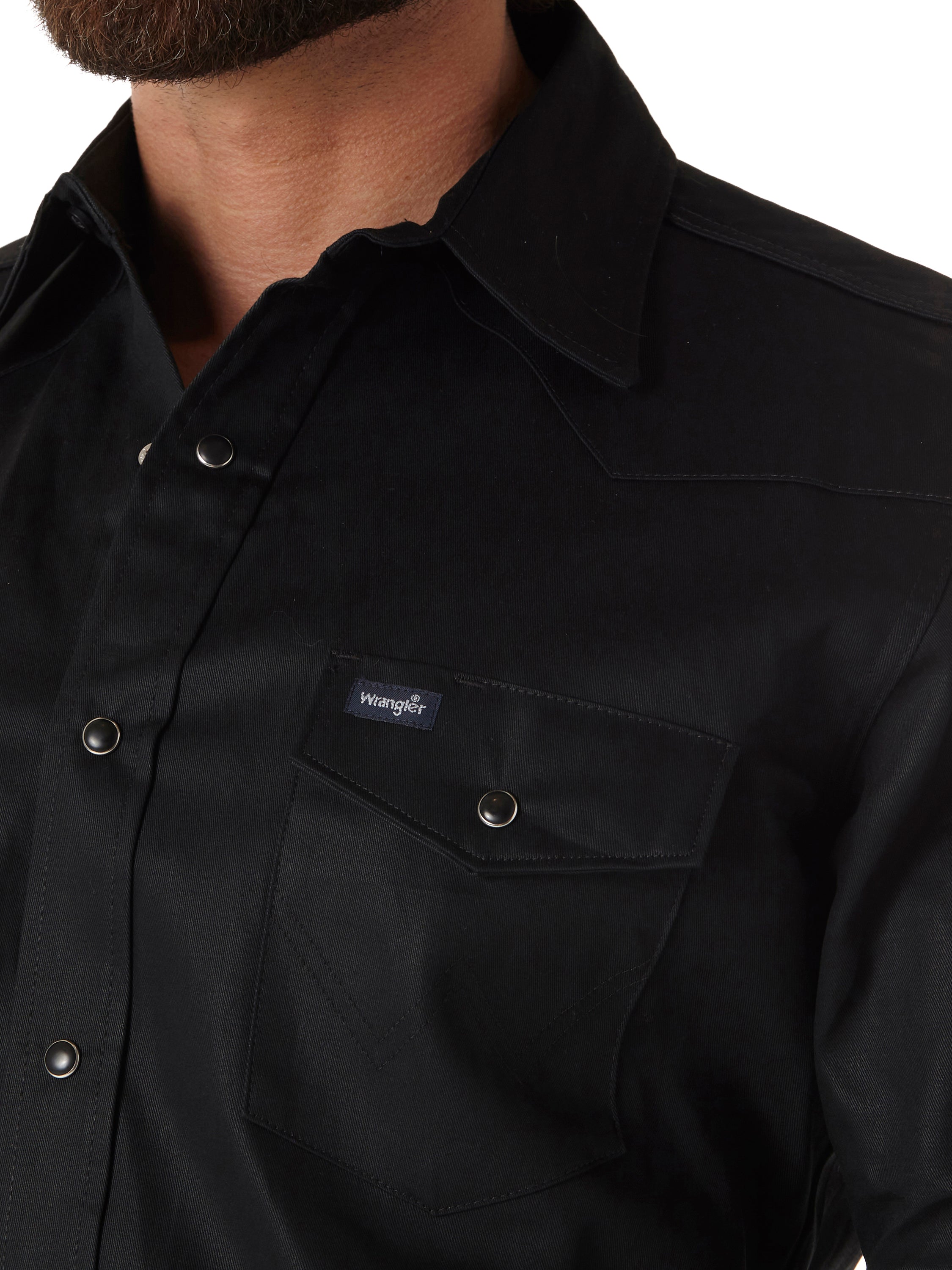 Wrangler Men's Basic Twill Long Sleeve Solid Snap Work Shirt - Black
