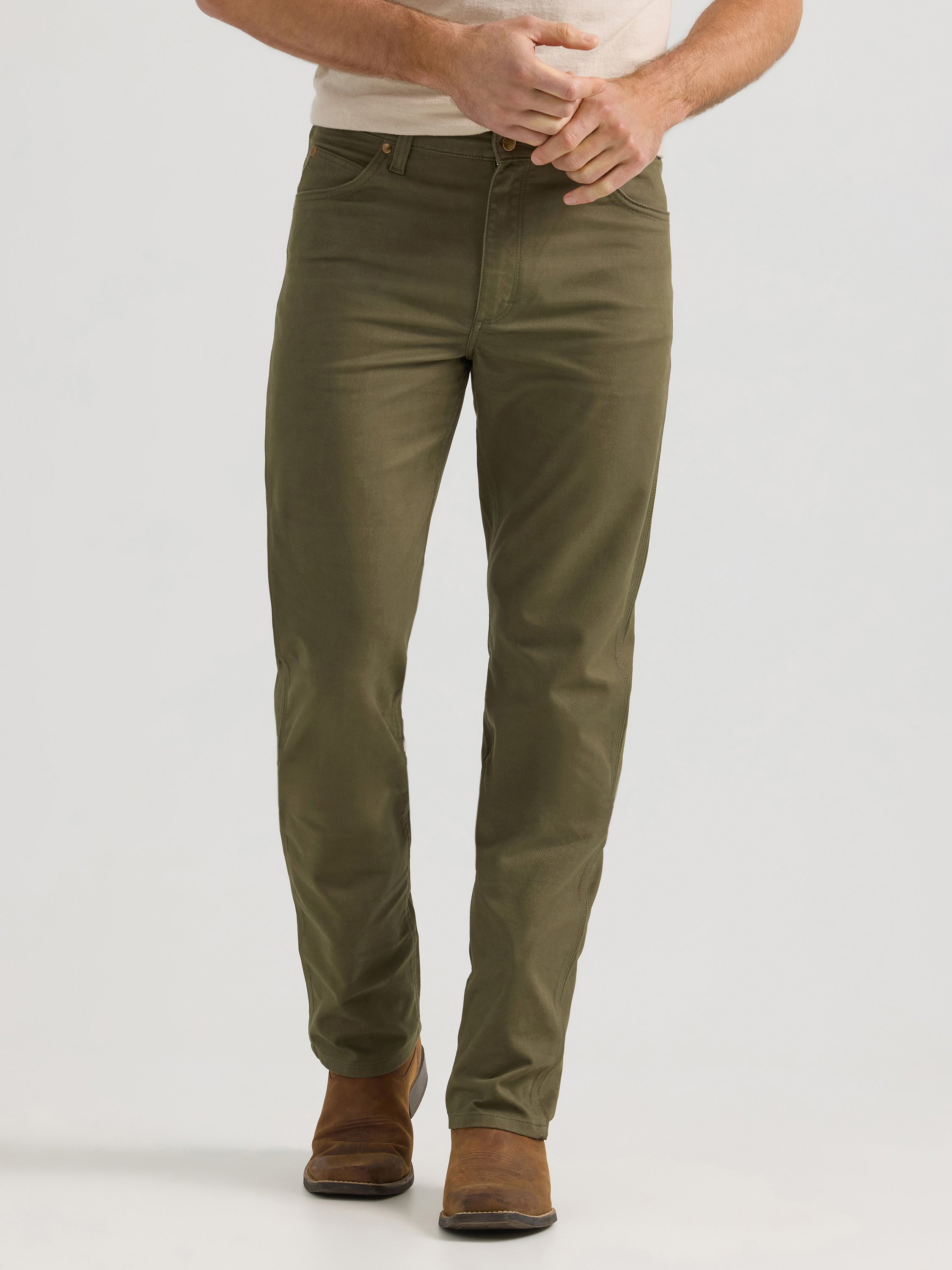 Your favorite work pants just got a big upgrade with the Wrangler Tough Comfort 47 Pants. Crafted from a cotton canvas with just enough stretch to move with you through every task, this regular fit mid rise pant comes equipped with features like a more comfortable waist, deep front pockets, extra durable three-needle stitching, our iconic five pocket styling, and a boot friendly design.