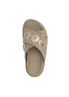 Ready to make a statement? GORGENE will set you apart. Designed with vegan leather, double cross straps and silver hardware, this sandal gives a western touch to your summer wardrobe. Finished on a contoured footbed and a 1.5-inch platform sole.