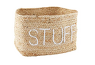 Help your house feel like a home with our Stuff and Etc. Basket Set. The two piece set comes with two embroidered jute baskets. The baskets feature the sentiment "Stuff" and "Etc.". The smaller ETC basket fits inside the larger Stuff basket for easy storage while not in use.