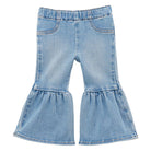 The flared leg design adds a cute, trendy silhouette, while the adjustable waistband ensures a perfect fit for growing toddlers. Finished in a soft Sky blue wash, these jeans pair perfectly with tees, blouses, or western-style tops for a complete look.