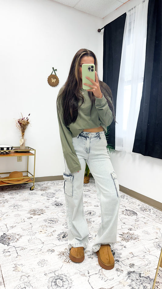 Light Wash High Rise Crop Straight Fit Risen Jeans
