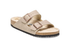- Contoured cork-latex footbed creates custom support with wear