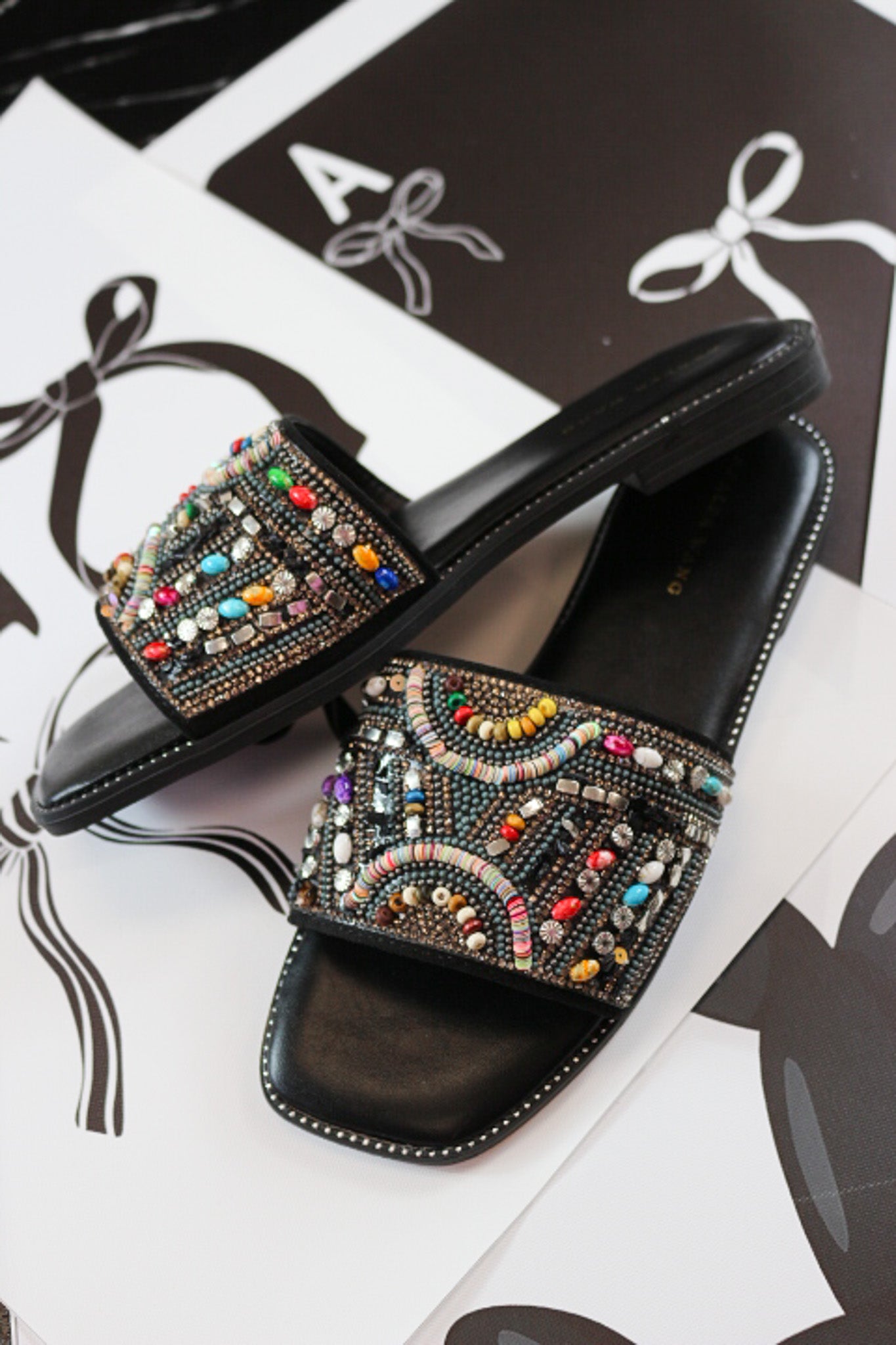 Essre Black Beaded Sandals