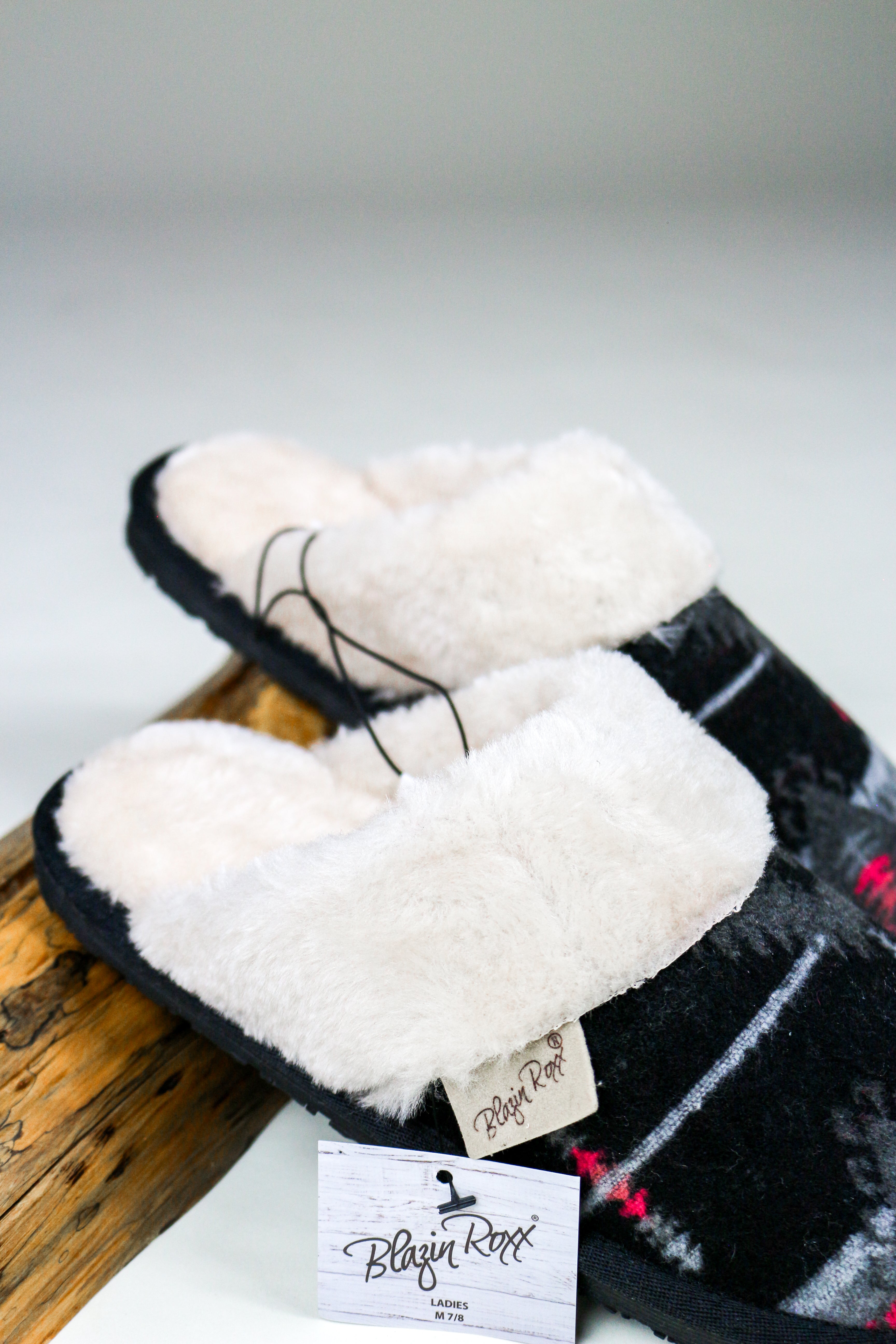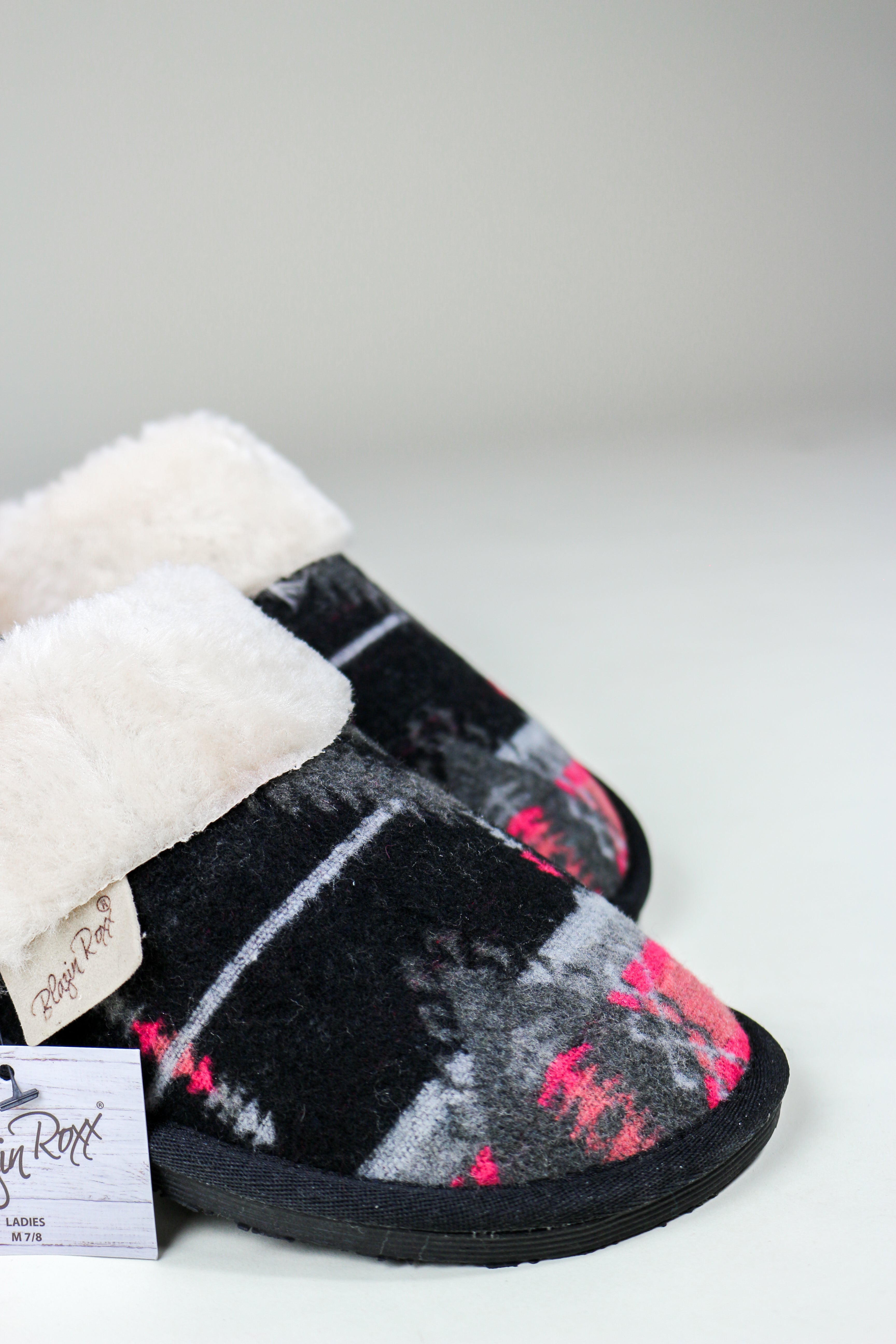 These Blazin Roxx slippers are the ultimate Western fashion statement. From the fancy faux fur collar to the snazzy black and pink design, you'll be lookin' like a real wild child! Slip your feet into these and you'll be ready to take on the world. Yeehaw!