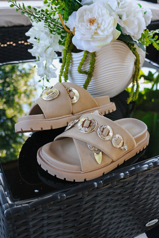 Icier Fuzzy Strap Platform Cognac Slippers MIA