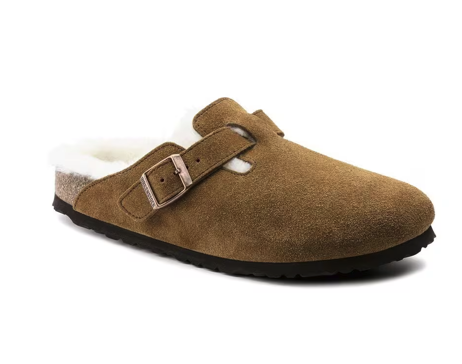 Boston Shearling Fur Birkenstock Slip Ons -Mink Brown