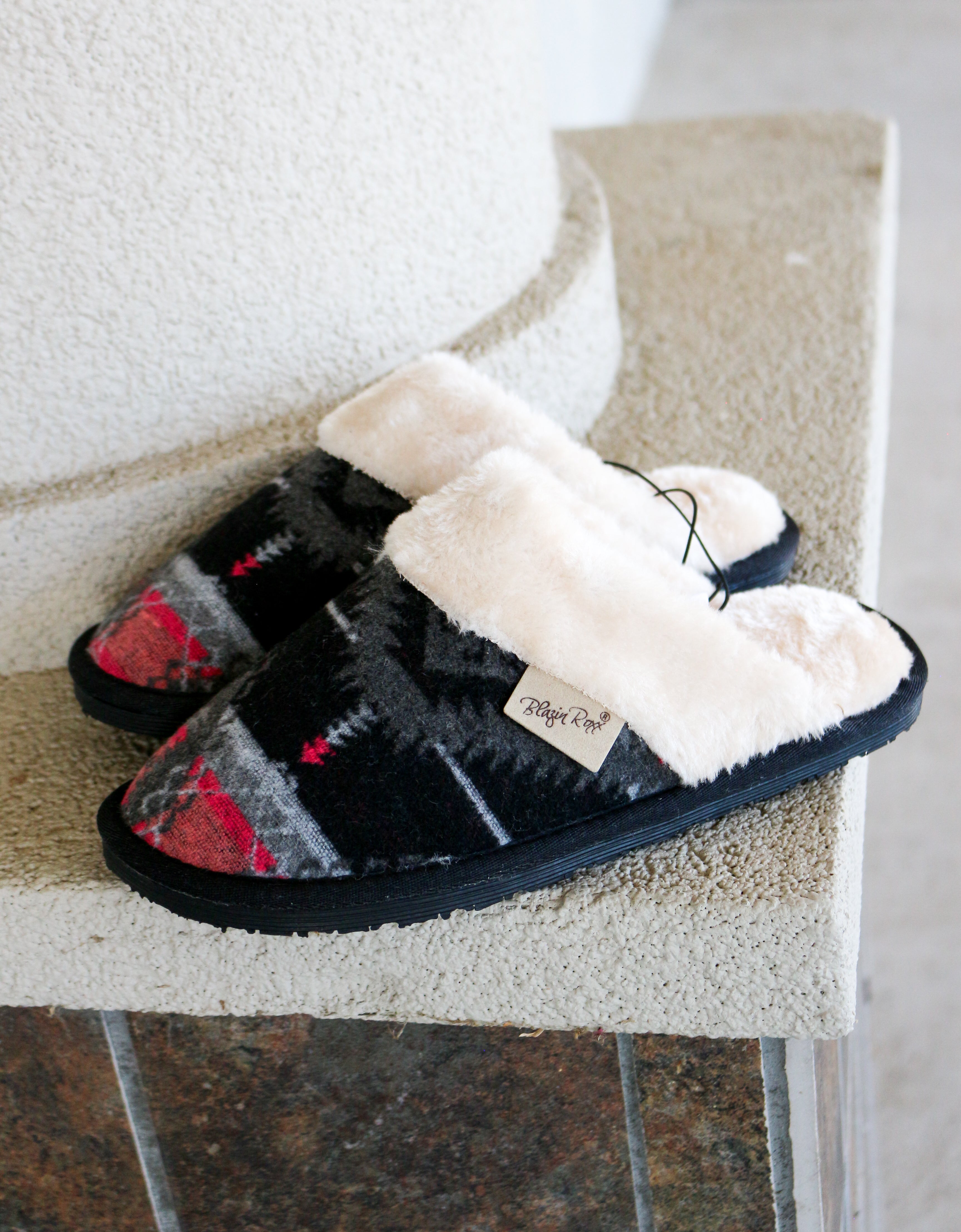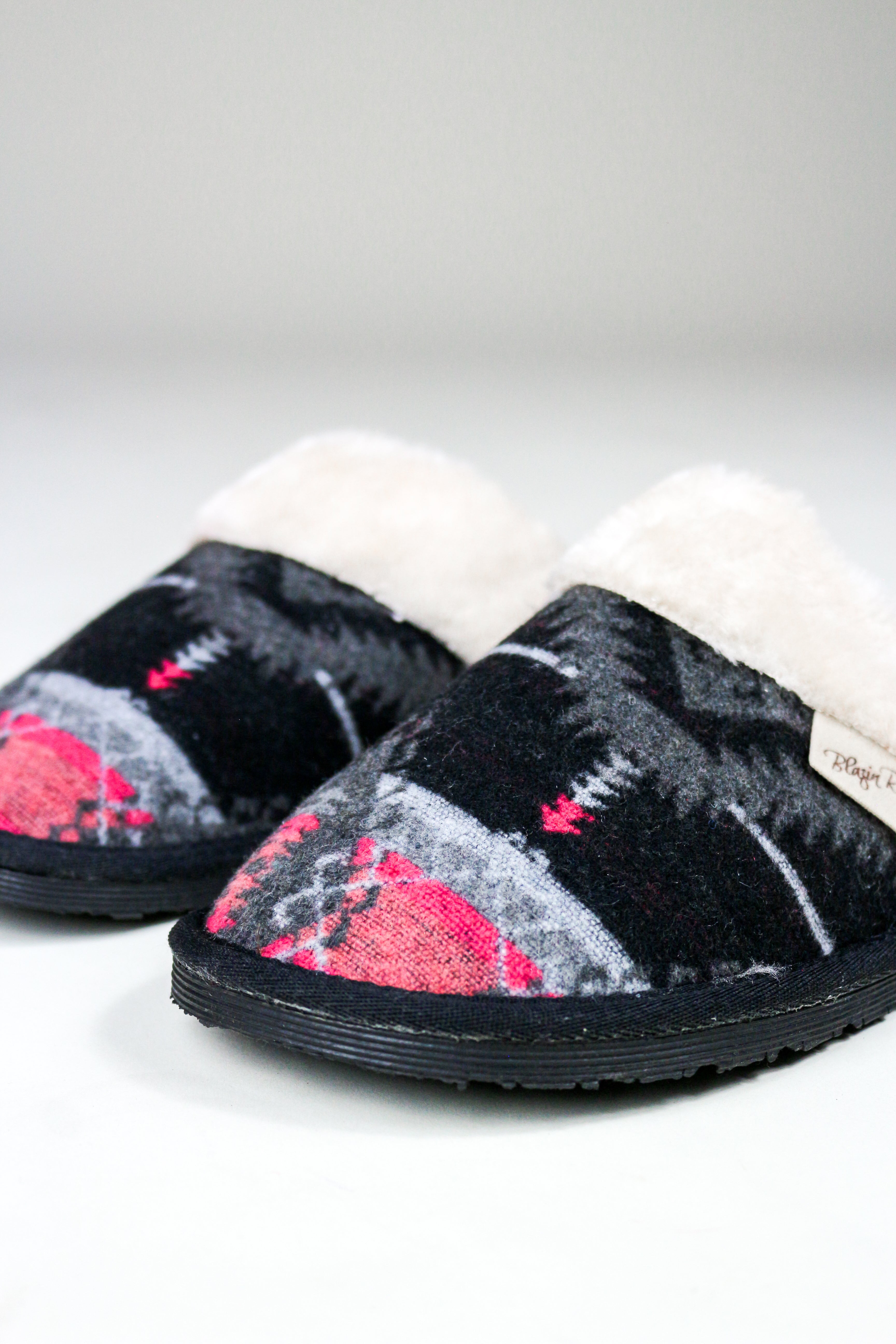 Blazin Roxx Black & Pink Faux Fur Collar Western Women's Slippers
