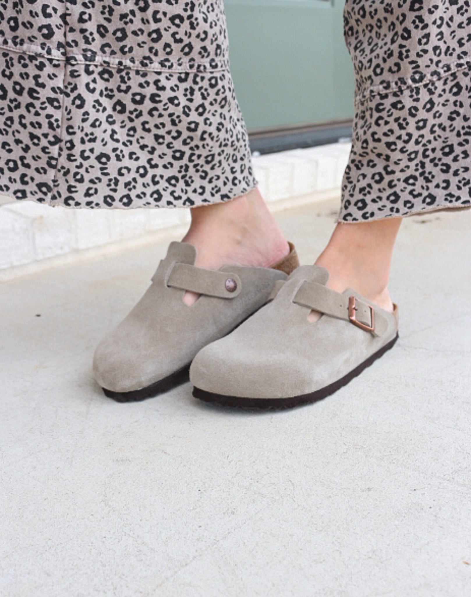 Boston Soft Footbed Taupe Suede Leather Slip On by Birkenstock