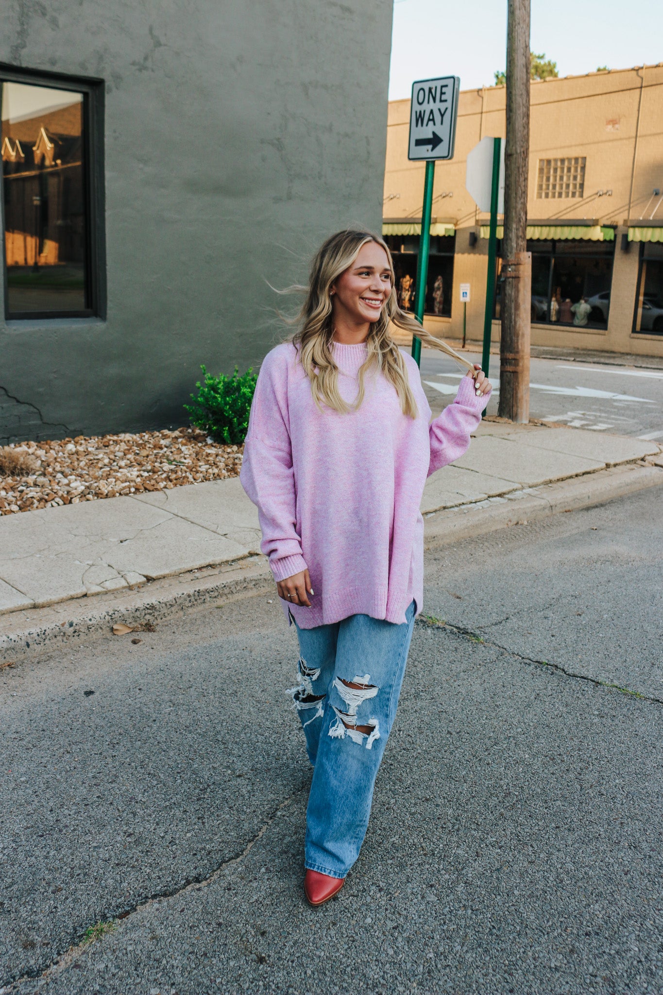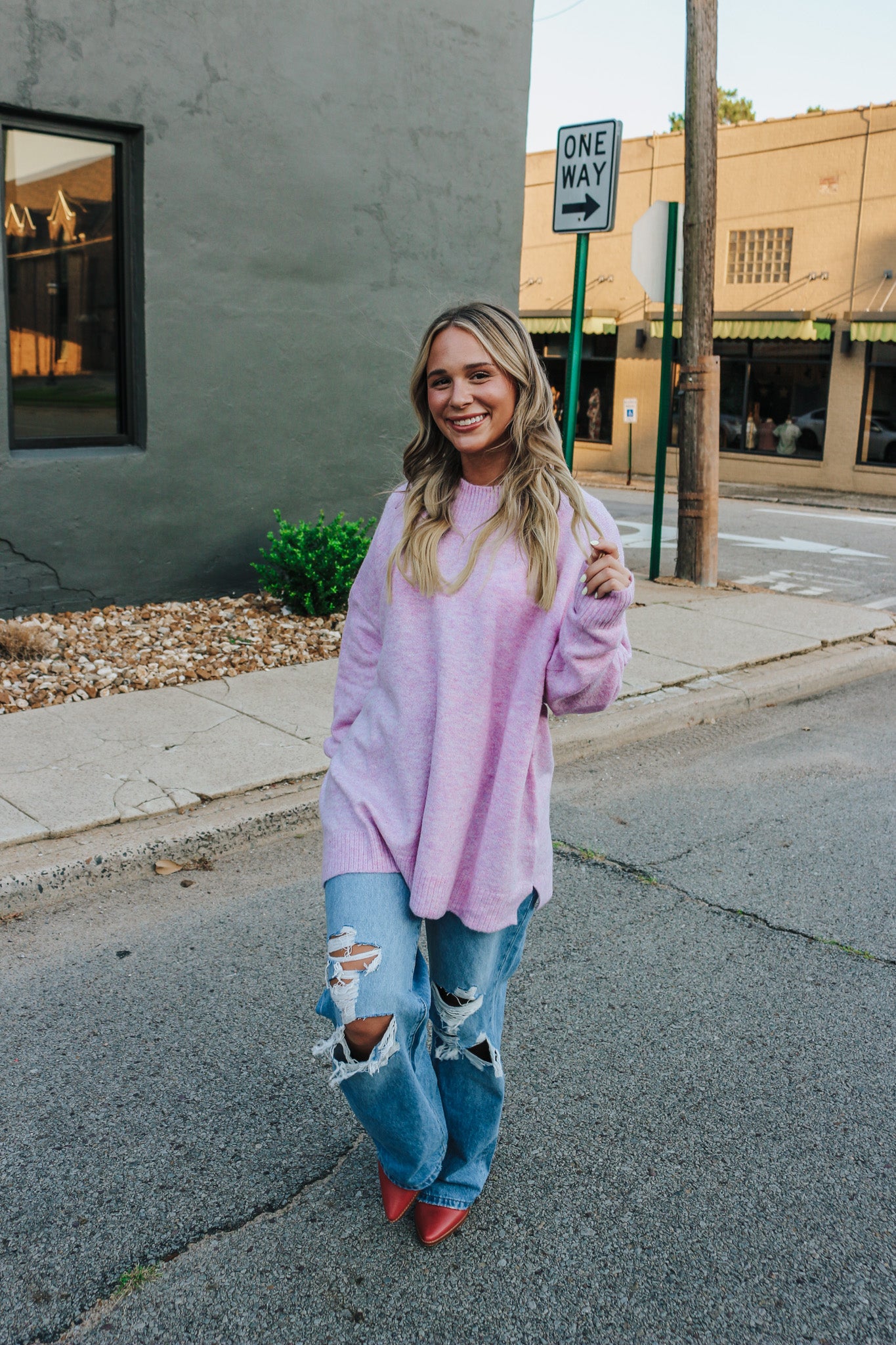 This oversized sweater features a beautiful heathered knit that adds texture and visual interest. The ribbed crew neckline and drop shoulder design give it a relaxed and effortless look. With a one size fits most, this sweater is versatile and comfortable for all body types.