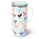We've got it handled! ☕ Shake your tail feathers! 🐔 These colorful funky chickens decked out in cowgirl boots on a glitter white background will have everyone on the farm clucking Yeehaw!