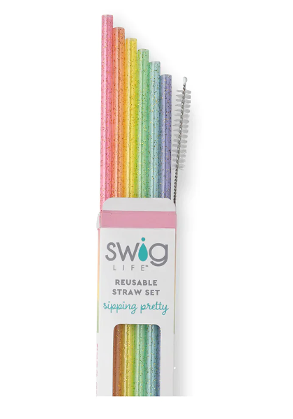 - 4 printed straws, 2 solid color straws, and 1 cleaning brush