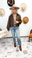 Limitless Efforts Cocoa Leather Denim Jacket