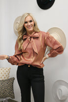 Women's Wrangler Rose Gold Shimmer Tie Neck Blouse