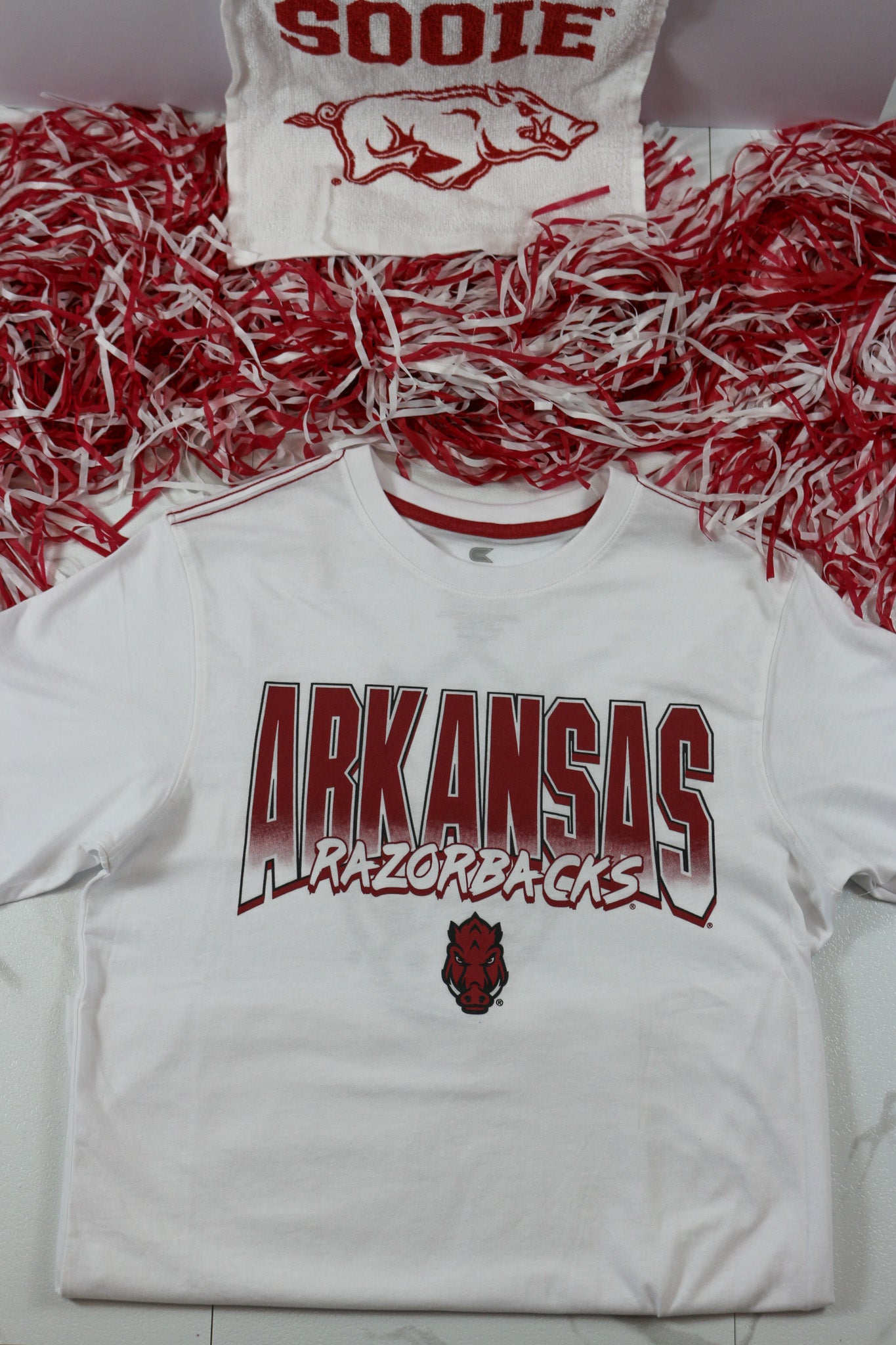Show off your team spirit with this Arkansas Razorbacks Men's White Short Sleeve T-Shirt! Made with soft and durable materials, it's perfect for game day or everyday wear. Support your favorite team while staying comfortable and stylish. Go Razorbacks!