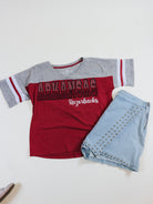Add some sparkle to game day with our Rhinestone Tee featuring the LSU Tigers or Arkansas Razorbacks logo. Let your team spirit shine through with this eye-catching shirt. Perfect for showing off your team pride at the stadium or out with friends.