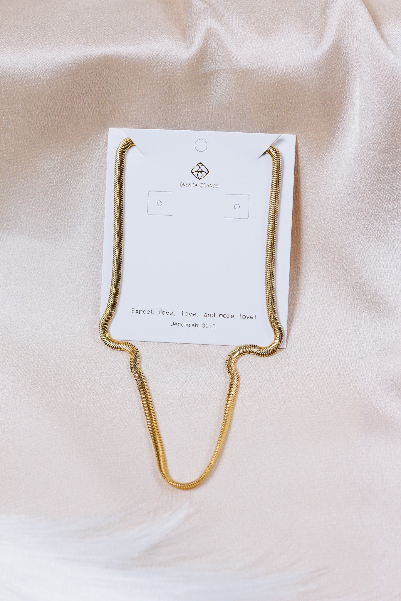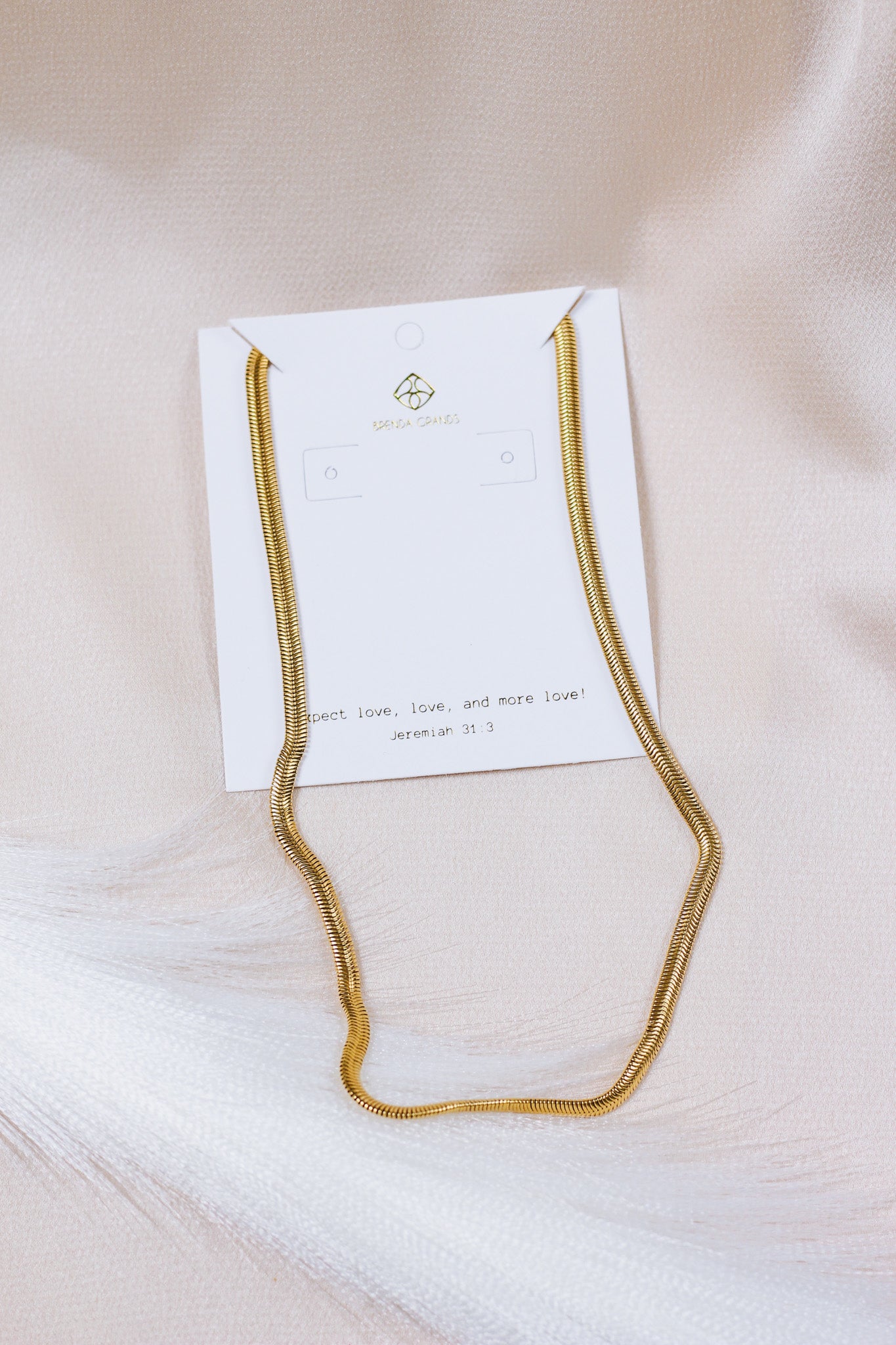 Brenda Grands Gold Matte Herringbone Necklace - Waterproof