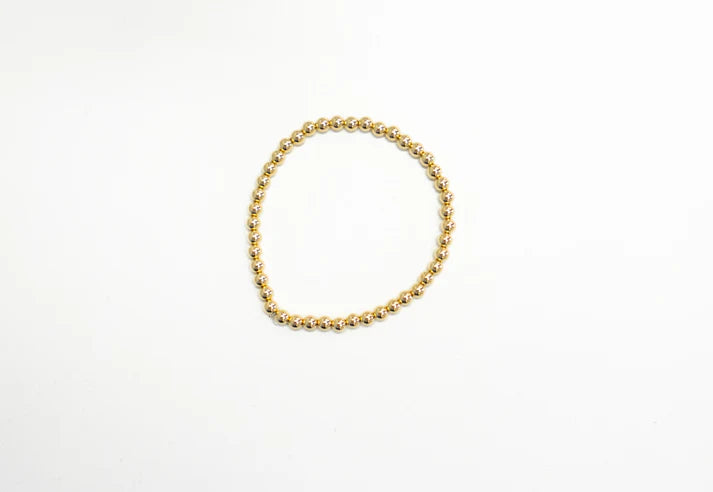 14k gold filled bracelets designed with 2mm, 3mm, 4mm, 5mm, 6mm & 8mm beads on high performance string. Measures 6.50" and an extended size of 7.25"